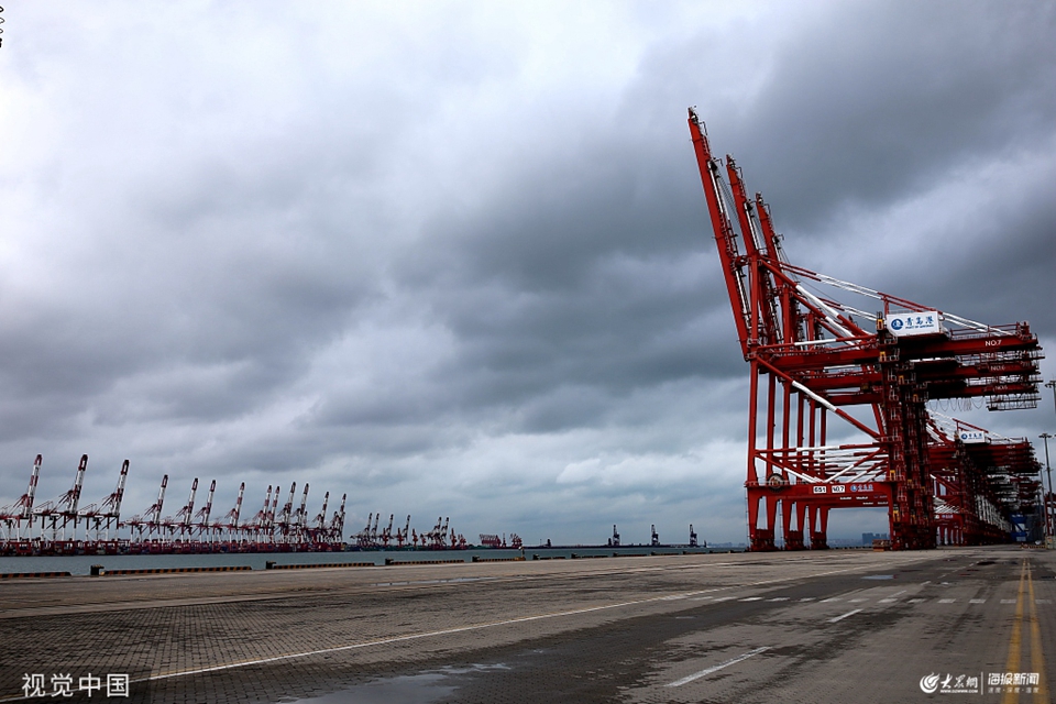 2019年8月12日,青島西海岸新區,臺風“利奇馬”過后,烏云下青島港區的景色別有一番風味,宛如畫卷。圖片作者:吳紹洋/視覺中國