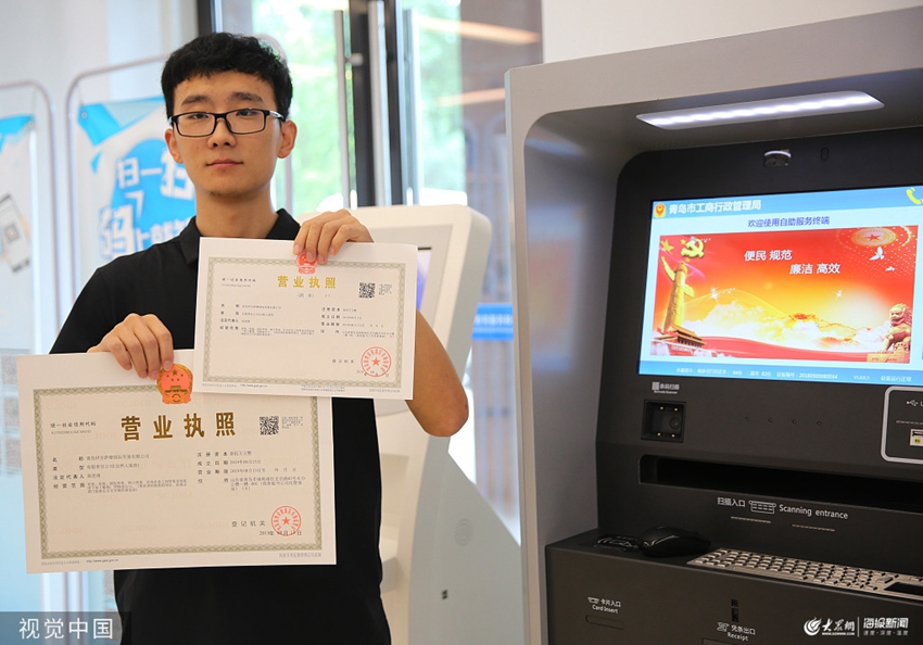 8月13日,青島,市民高先生領取了系統正式上線后的營業執照。