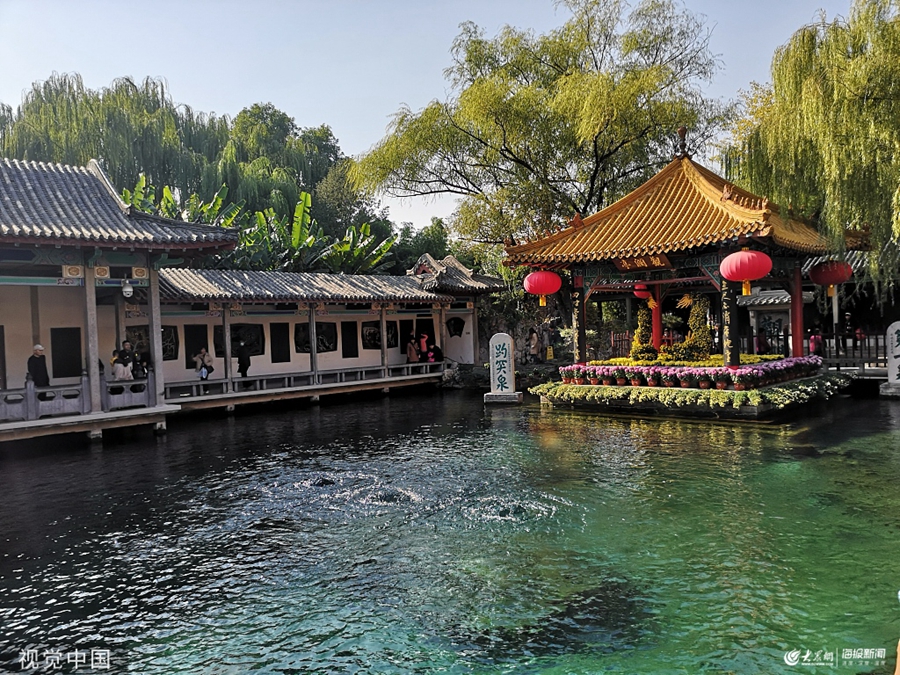 趵突泉公園里,簇擁著汩汩清泉,菊花姹紫嫣紅爭奇斗艷,與繽紛多彩的林木秋色交相呼應,一幅和煦秋光美景長卷躍然眼前。