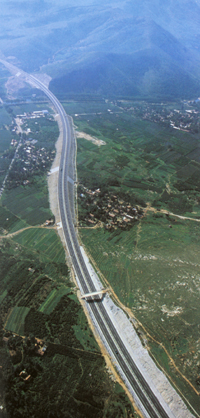 高等級公路居全國前列 山東的公路以通車里程長、路面等級高聞名全國。到2001年底,全省公路通車里程已達71128公里。公路密度達到每平方公里45.68公里。其中二級以上高等級公路24784萬公里,占總里程的35%左右,高速公路通車里程2077公里,均居全國首位。目前,省會濟南與各市政府駐地、主要旅游城市、港口城市和重要物資集散地等,均由二級以上高級公路連接。全省基本實現了以干線公路為主骨架、干支相連、四通八達的公路網絡。省會城市濟南與13個市由高速公路直接相連,80多個縣(市區)通了高速公路,并建成5個省際高速公路出口。