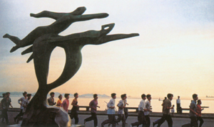 2001年,城鎮居民人均可支配收入7101.1元,比上年增長了9.4%。全年城鎮居民人均消費性支出5252.4元,比上一年增長4.6%。人民生活水平和質量顯著提高,人民的衣、食、用、行開始向多樣化、高檔化發展。食物結構進一步改善,肉、蛋、禽、水產品消費在食品所占比重不斷增加。人們的衣著也開始講求質量、款式和品牌。2001年,城鎮居民人均衣著消費支出為700.3元。 ◆晨練