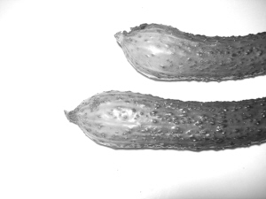 在省城一家論壇上,網(wǎng)友“太陽(yáng)忘記了”發(fā)帖稱,不久前買的黃瓜在家放了兩天之后,竟然自己長(zhǎng)大了,發(fā)帖的同時(shí)網(wǎng)友還上傳了照片作證。記者看到原本應(yīng)該細(xì)長(zhǎng)的黃瓜,卻都在頭部出現(xiàn)了圓形的隆起,如同大頭娃娃一般。另外,黃瓜本身的顏色也發(fā)生了變化,中段和尾部是常見(jiàn)的深綠色,而在頭部則是偏青黃的顏色。
