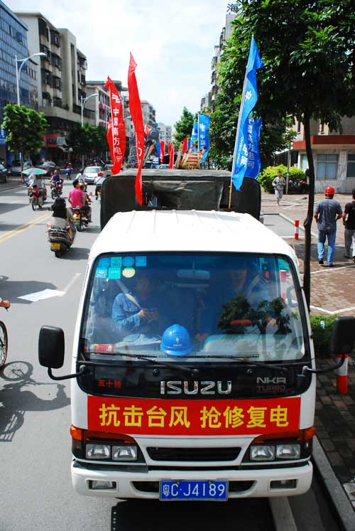 臺(tái)風(fēng)登陸前后,廣東電網(wǎng)公司迅速組織搶修人員赴現(xiàn)場(chǎng)搶修,17日當(dāng)天晚上,基本恢復(fù)茂名、陽(yáng)江等受災(zāi)地區(qū)供電。18日當(dāng)天,供電搶修人員連續(xù)工作到晚上23點(diǎn),恢復(fù)了湛江10千伏及以上供電線路的正常供電,湛江地區(qū)近80%受災(zāi)用戶恢復(fù)供電。