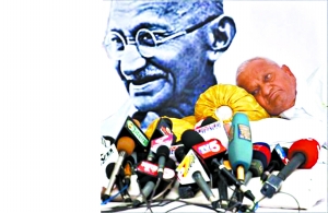 97小時(shí)前,72歲的哈薩雷做了一件“非常甘地”的事兒非暴力、不合作,絕食靜坐,發(fā)起了一場名為“一直堅(jiān)持到死”運(yùn)動(dòng),以絕食方式要求印度政府重新審議反貪腐法案《公民監(jiān)察法案》。最終,辛格總理在強(qiáng)大的輿論壓力下,對哈薩雷做出妥協(xié),同意成立一個(gè)由部長和包括哈薩雷在內(nèi)的民間人士組成的10人聯(lián)合委員會(huì),重新審議反貪腐法案。