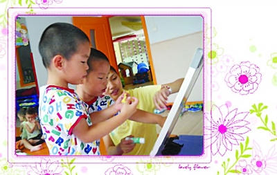 “到我們這來上學(xué)的寶寶們都很小,而且雙胞胎又有其特殊性,剛來的時(shí)候其中一個(gè)寶寶要上廁所,另一個(gè)寶寶也堅(jiān)持要跟著去,無論做什么都要一起,非常有意思。酷似的雙胞胎寶寶學(xué)習(xí)能力也相近,而且雙胞胎寶寶對事情的趣味也保持相同。”李老師和記者分享道:班上有個(gè)漂亮活潑的中加混血小女孩,十分討喜。同時(shí)吸引了兩對大牛小牛,大寶小寶雙胞胎兄弟的注意力。“他們兩兄弟可熱情了,和小美女一起玩,有時(shí)還輪番上陣,抱著小美女的臉頰‘啃’,這個(gè)‘啃’完那個(gè)又來‘啃’,小美女被他們親多了,都不配合他們了。”