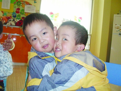除了區(qū)分身形酷似的寶寶們讓老師有點(diǎn)暈,也給老師們的教學(xué)和其他小伙伴帶來了特別的樂趣。孩子們就覺得雙胞胎寶寶們長得很像,覺得很好玩,他們平時(shí)學(xué)習(xí)玩耍也不區(qū)分他們誰是誰,逮著誰就雙胞胎寶寶們的名字一起叫。“老師們在上課的時(shí)候和寶寶們互動(dòng),想要叫誰,喊名字就可以了。但是課下互動(dòng)有時(shí)老師還真有點(diǎn)暈。”李老師說。“比如和其中一個(gè)雙胞胎寶寶玩拋球游戲,把球拋給寶寶,再鼓勵(lì)寶寶把球拋回來,這時(shí)老師會(huì)先問‘你是豆豆還是零零啊’,等到寶寶自報(bào)家門后,老師才會(huì)接著說‘豆豆(或零零),把球拋回來。"