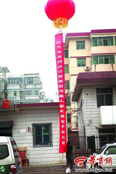 在西安市紅旗東路,幾百米的道路兩邊,由紅色氣球拉開的恭祝條幅有五六十個之多,“恭賀”單位中有20多個是政府職能部門,上至省上廳局,下到城管、街道辦,甚至還有國家部委駐陜西的辦事機構。這讓過往的行人很是詫異,這個名為河南人家的酒店得有多大的規模和氣勢。