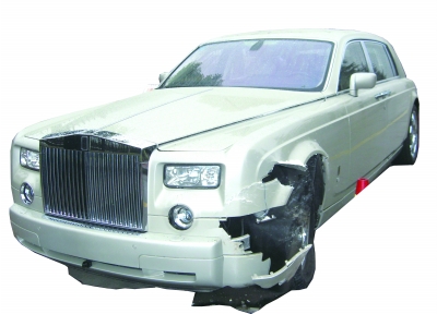 [提要] 一輛東南菱悅轎車在彎道處與一輛價(jià)值1200萬(wàn)的勞斯萊斯幻影限量版的豪車發(fā)生會(huì)車碰撞,勞斯萊斯幻影左前輪胎輪轂及左側(cè)碳纖維護(hù)板損壞嚴(yán)重,估算維修好得花費(fèi)80萬(wàn)。