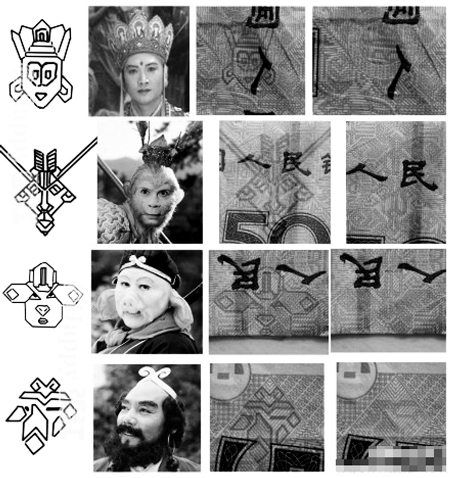 繼第五代百元人民幣被網友爆出“藏貓貓”圖案后,近日又有網友從第五代50元人民幣中發現《西游記》中唐僧師徒四人Q版臉譜。對此,河南錢幣專業委員會會長袁銀龍解釋,圖案應是先秦時期的一種紋飾。