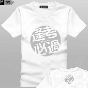 供考生們身上穿戴的除了平角褲,印有各種喜慶標(biāo)語的T恤衫也很受歡迎。“逢考必過”、“高考必勝”等常見標(biāo)語已經(jīng)無法淋漓盡致地表現(xiàn)賣家的創(chuàng)意,“春哥靈魂附體,霸氣震懾考場(chǎng),監(jiān)考老師望風(fēng)而逃”也已經(jīng)過時(shí)了,模樣怪異的九臂“考神”和卡通版的“文昌帝君”才是新花樣,不過光有這二位的形象還不夠,須得配上一副對(duì)聯(lián)才能彰顯“霸氣”,上聯(lián):敬一敬百問不倒;下聯(lián):拜一拜考試必勝;橫批:逢考必過。