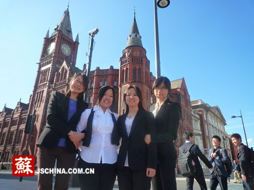 楊軼凡(左一)、呂葉青(左二)、李玉嬌(右二)和吳旻驊(右一)在英國利物浦大學(xué)。