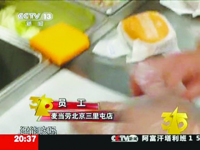 北京三里屯一家麥當勞賣過期食品被央視記者臥底曝光。央視截圖