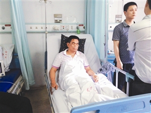 接報后,記者來到深圳市龍華人民醫院外三科30號病床,見到了受傷的王紅光。他一手打著點滴,一手連接著監控儀器,鼻子上還插著吸氧管,臉上有多處擦破的痕跡。