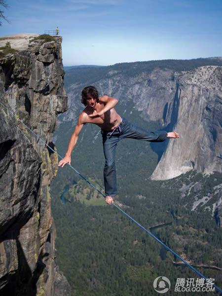 1、迪恩·波特最近在越賽米蒂的塔夫特走鋼絲。杰夫·坎寧安攝