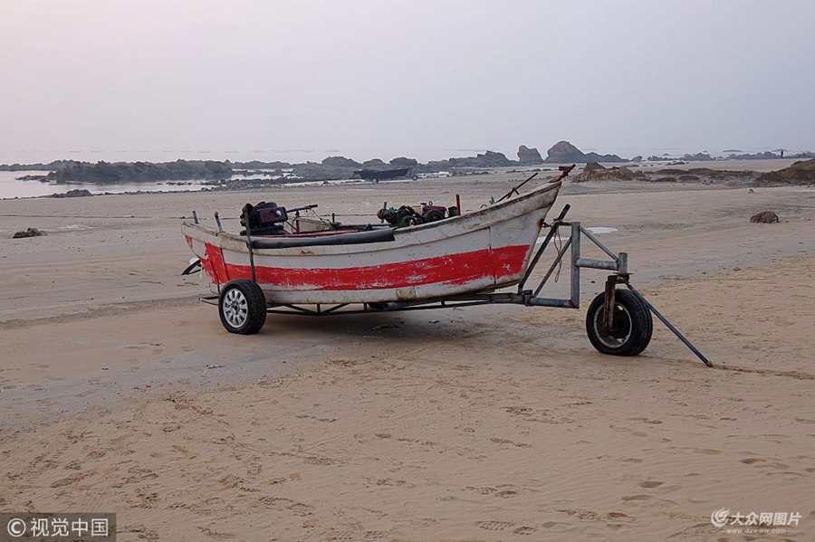 青島:小漁船“駛”上海灘越冬成一景 (/)