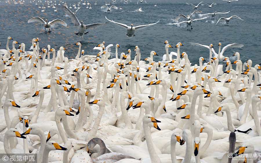 近萬只天鵝越冬榮成 吸引大批游客 (/)