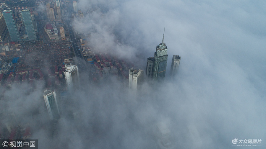 煙臺現平流霧景觀 仿佛“海市蜃樓” (/)