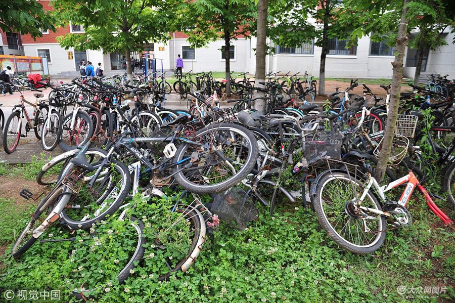 2018年5月22日,山東青島某高校,隨著畢業季來臨,不少大四畢業生開始打包處理自己的物品,而不少同學卻遺忘了大學期間購買的自行車。