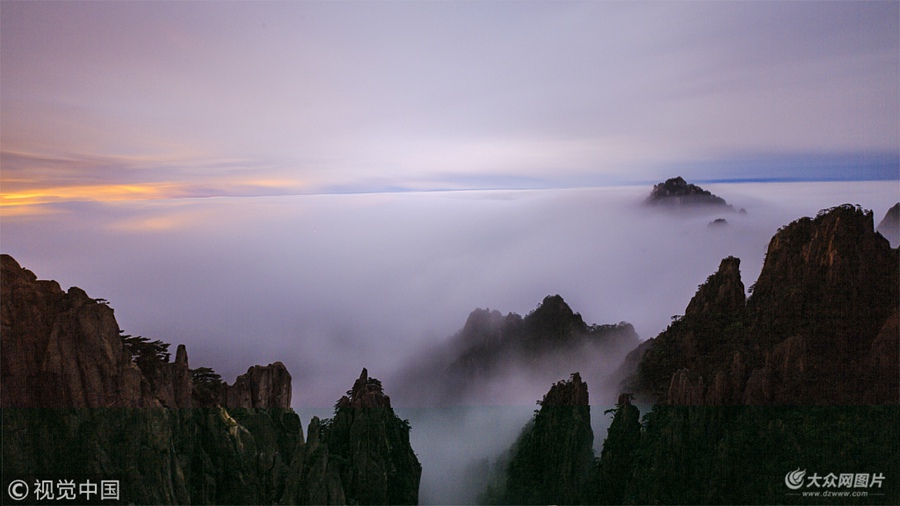 2018年5月22日,安徽黃山風景區現云海瀑布景觀。當天,百里黃山云霧彌漫,瀾翻絮涌,千條泉流和萬道山谷隱現在虛幻之中,“山中一夜雨,處處掛飛泉”的美麗景象呈現在人們面前,讓人想起魏源的詩句“峰奇石奇松更奇,云飛水飛山亦飛”。