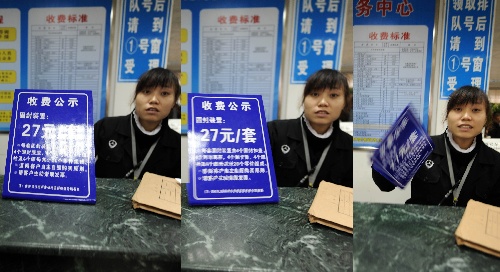 見到記者拍照,一工作人員立即將收費(fèi)公示收了起來。公示上注明有“售價(jià)已報(bào)柳州市價(jià)格監(jiān)督檢查分局備案”,而物價(jià)部門稱這項(xiàng)收費(fèi)并未備案,此舉是誤導(dǎo)消費(fèi)者(拼版圖片,12月13日攝)。新華社記者李斌攝
