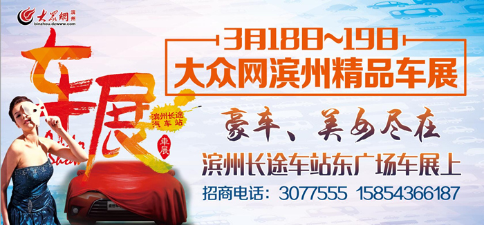 大眾網濱州2月17日訊(記者 王君彩)冬天已經遠去,春暖花開的時節(jié)即將來臨,這個時候您更需要一輛愛車,帶著家人一起踏青賞景。3月18日至19日,大眾網濱州頻道首屆車展將在濱州長途汽車站東廣場開幕,屆時將為您奉上最精致的車型、最優(yōu)惠的價格,現(xiàn)場還將舉辦尋寶大賽、實景搜紅包、COSPLAW車模拍客大賽以及相親大會等活動,讓您成功購置心儀愛車的同時,收獲豐厚大禮。敬請關注,期待精彩!