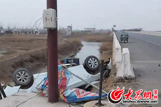 大眾網記者從沾化交警大隊了解到,事故發生時間為19日下午3點30分左右,地點為沾化區與無棣縣分界處秦口河橋附近(當地稱為西堼大橋),事發時一輛白色轎車與一輛黑色轎車相撞,致使白色轎車側翻到路邊溝內,事故導致白色轎車上一男一女和兩名兒童共四人不同程度受傷。