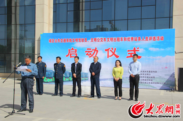 啟動(dòng)儀式上,濱州市交通運(yùn)輸局副調(diào)研員張杰宣讀了《關(guān)于在濱州城區(qū)公共交通系統(tǒng)開(kāi)展文明駕駛員、文明公交車(chē)、文明出租車(chē)和優(yōu)秀站務(wù)員評(píng)選活動(dòng)的通知》,駕駛員代表和濱州市交運(yùn)集團(tuán)負(fù)責(zé)人分別作了倡議發(fā)言和表態(tài)發(fā)言。