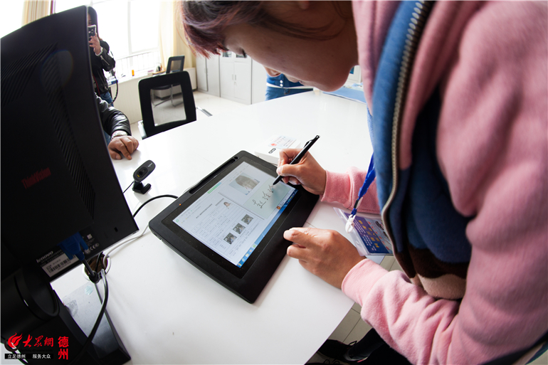 考生電子簽名后,成績自動錄入(撒偉 攝)
