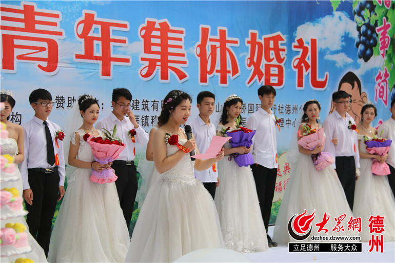 大眾網德州5月4日訊(見習記者 徐瑞 通訊員 張瑞 周青)5月4日,德州市黃河涯鎮首屆青年集體婚禮在奧德曼酒莊舉行,共有13對新人參加,區委常委、宣傳部長駱曉東出席。