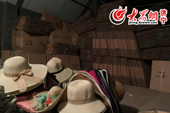 倉庫里放著帽子和專為發貨定制的紙箱。