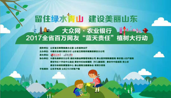 為了造福后代,創造良好的生活環境,從2013年起,大眾網泰安頻道已連續五年聯合中國農業銀行泰安分行在植樹節期間開展公益植樹活動,吸引了上萬名網友和泰安110多家企事業單位參加,先后在石蠟湖畔、省莊鎮、寶泰隆、夏張鎮梨園村等地植樹植綠,用實際行動踐行媒體社會責任。