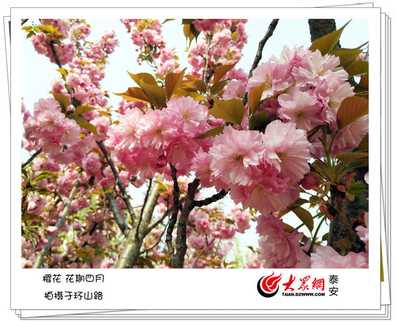 環(huán)山路沿線,還有櫻桃園附近落英如雪的櫻桃花,梅園的薔薇、紫葉李,魯班公園北側(cè)一片的杏花。一入三月,這條環(huán)繞泰山腳下的交通要道就沉浸在醉人的春光里,路人往返,熙攘喧囂,唯有花不語。