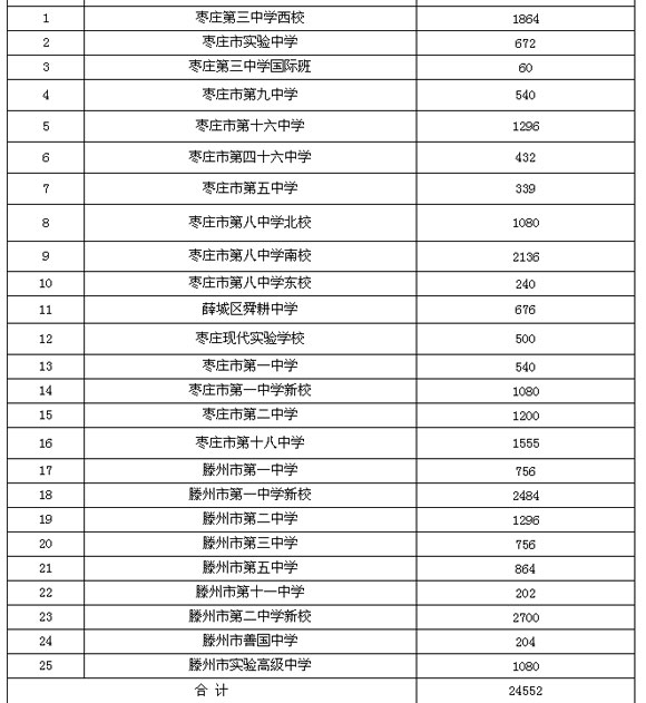 棗莊市2015年普通高中招生計劃。