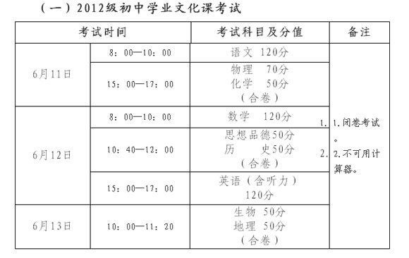 2012級初中學業文化課考試