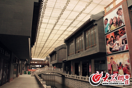 從2012年的繁華走過,魯南水城已經沉寂了很久,F在的魯南水城里,大大小小的招牌林立,五花八門,隨意走近一家商鋪透過玻璃窗,看到的卻是積滿灰塵、雜亂不堪的倉庫;魯南水城小橋回廊依然在這里,而水卻很久沒有流動,成了一片死水;從被太陽曬的暖意洋洋的馬路上走進水城,一股冷意會使你打幾個寒戰。環繞整個魯南水城,還在營業的商鋪只有十個左右,除一家餐飲、KTV外,其他商鋪多以廣告公司為主。