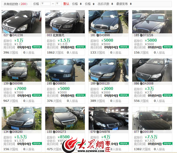 據(jù)了解,徐州華信拍賣有限公司受棗莊市市直機關(guān)事務(wù)管理局委托于2016年9月4日上午9點至晚上20點,在淘寶網(wǎng)上公開拍賣車輛200輛,拍賣分四批進行,每批50輛。