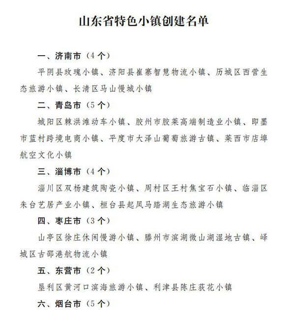 大眾網棗莊1月23日訊(記者 張喬陽)1月23日,省政府辦公廳公布新的中小城市試點名單和特色小鎮創建名單,經過推薦、評選,省政府確定棗莊等8個城市為大城市試點、滕州等15個市(縣)為中等城市試點、桓臺等15個市(縣)為I型小城市試點、滕州市西崗鎮等10個鎮為新生小城市試點、棗莊市市中區稅郭鎮等30個鎮為重點示范鎮;并確定將棗莊山亭區徐莊休閑漫游小鎮、滕州市濱湖微山湖濕地古鎮、嶧城區古邵港航物流小鎮等60個小鎮納入省級特色小鎮創建名單。