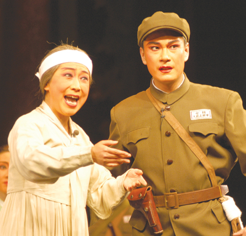 6月22日晚,省京劇院復(fù)排的現(xiàn)代京劇《奇襲白虎團(tuán)》在濟(jì)南魯 藝劇院進(jìn)行首次彩排。7時30分,在戰(zhàn)鼓聲中大幕徐徐開啟;戰(zhàn)鼓愈 驟,嚴(yán)偉才、韓大年英姿煥發(fā),持槍上場;中朝戰(zhàn)士全副武裝,分別 由舞臺兩側(cè)列隊登臺……