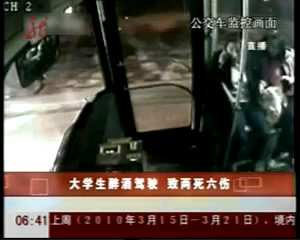 昨日,黃石市交警支隊相關負責人介紹,當晚9時36分,黃石理工學院學生謝某醉酒后,駕駛一輛深圳號牌的現代牌小車,由市政府路口往磁湖路方向行駛。途經桂林北路理工學院中門路段時,先撞上行人后與公交車相撞,致使1名行人和公交車上的1名乘客死亡,另有6人受傷。
