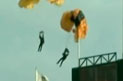 士兵跳傘被掛旗桿上