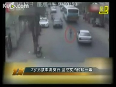 監控實拍驚險一幕 2歲男孩車流穿行找媽媽