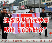 百元鈔票貼出"百年好合"