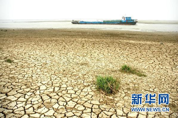這是1月3日在江西都昌縣印山附近拍攝的干涸的鄱陽湖湖床。 受長江上游和周邊來水持續減少的影響,我國最大淡水湖鄱陽湖的水位急劇下降。2日,鄱陽湖標志性水位站星子站水位跌破8米關口,鄱陽湖正式進入極枯水位期,湖區水體面積萎縮至不足200平方公里,不到豐水期面積的二十分之一。 新華社發