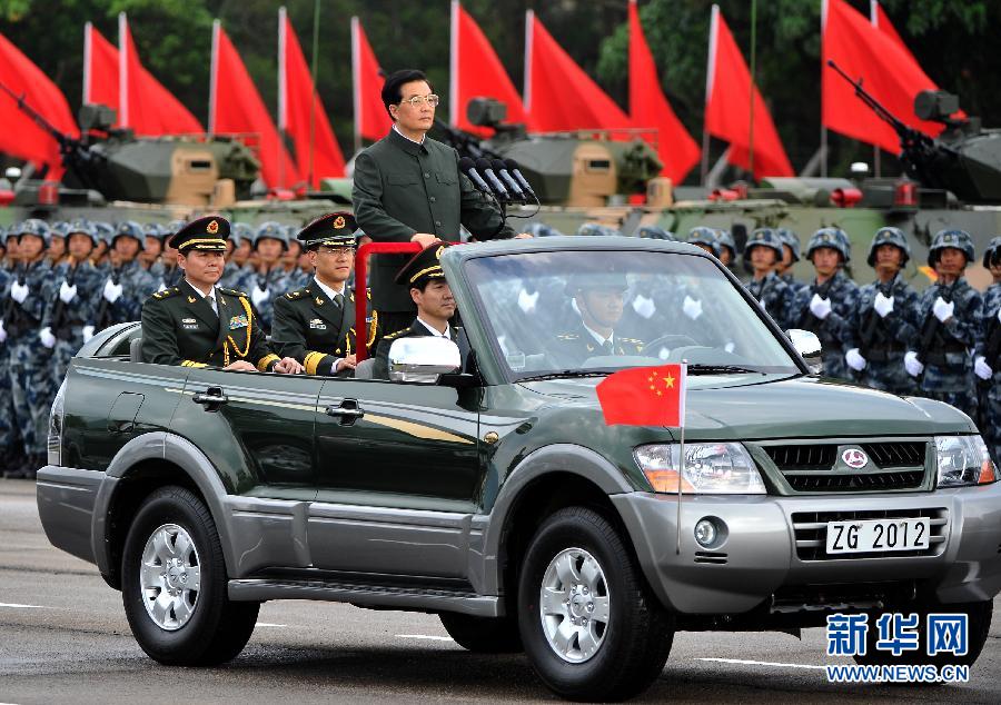 6月29日,中共中央總書記、國家主席、中央軍委主席胡錦濤在香港石崗軍營檢閱中國人民解放軍駐香港部隊。 新華社記者陳曉偉攝