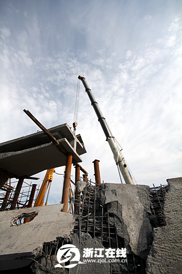 拆除工程由中鐵二十四局集團浙江工程有限公司負責,3個月前開工,還是杭州市建委的“平安工地”,已經安全生產109天。事故發生后,項目部大門緊閉,項目副經理梁曉峰稱正在開會研究,稍后再做說明。吊車所屬的杭州大力神公司工作人員在得知情況后,在電話中堅持表示所有機器都是達到安全標準的,絕不會引發鋼繩斷裂。