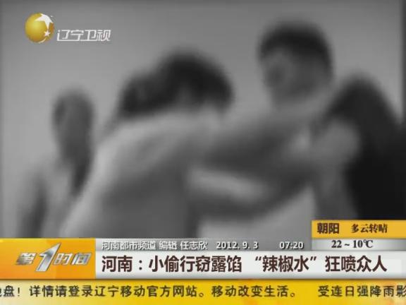 日前,倆小偷到鄭州市經三路和緯五路交叉口東南角一小區欲作案,被業主發現后,掏出桶裝辣椒水朝業主臉上噴去。在逃跑過程中,兩小偷把一位女保安打傷,并拿辣椒水朝10多位圍追的市民臉上噴去。一位年近六旬的保安死死拽住一小偷不放手,在眾多市民的幫助下,該小偷被擒獲,另一個小偷則趁亂逃跑。