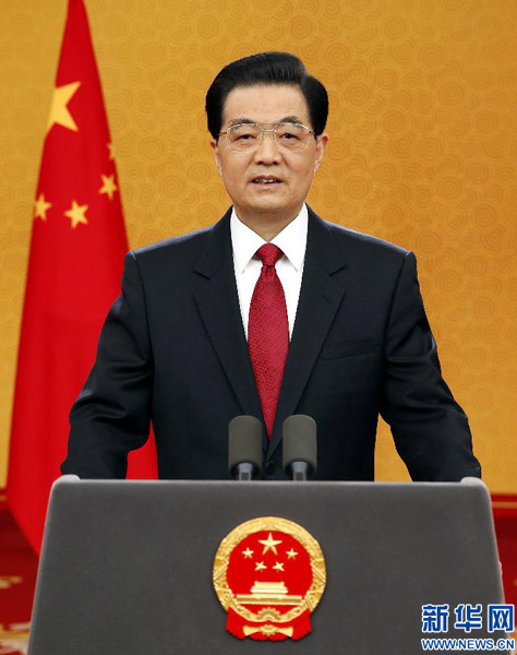 新年鐘聲就要敲響,2013年即將來臨。我很高興通過中國國際廣播電臺、中央人民廣播電臺和中央電視臺,向全國各族人民,向香港特別行政區(qū)同胞和澳門特別行政區(qū)同胞,向臺灣同胞和海外僑胞,向世界各國和各地區(qū)的朋友們,致以新年的祝福!