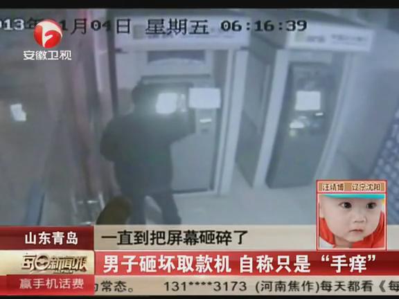 男子磚砸取款機 稱只是手癢 2013-01-11 08:39:37