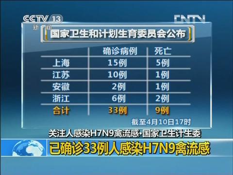 已確診33例人感染H7N9禽流感