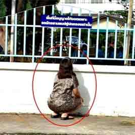 ▲這就是去幼兒園送娃的你--日前,一名泰國網(wǎng)友將一名關(guān)愛孩子的母親拍攝下來。該網(wǎng)友表示,這名母親送第一天來上幼兒園的孩子,雖然孩子跟著小伙伴和老師進(jìn)了校園,但是這名媽媽不放心,偷偷的躲在墻邊觀察(圖)。該圖立刻引起送娃爸媽們的共鳴。(人民網(wǎng))